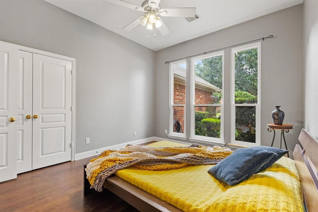 Nestled on a quiet cul-de-sac in sought-after Wind River Estates, this beautiful brick home has the space and updates today's buyers crave. New energy-saving windows and seamless gutters promise low-maintenance living, while the oversized pie-shaped lot offers a generous back yard framed by mature trees"”ideal for play, pets and family outdoor living. Inside its approx. 2,030 sq ft, a bright foyer opens to two flexible living areas. Entertain in the formal sitting room or gather around the fireplace in the spacious family room. There is both a formal dining room in the front of the home with the sunny breakfast nook open to the kitchen and family room where a picture window view of the lawn brings the outdoors in. The kitchen sits at the heart of the home, positioned for effortless flow. The split-bedroom layout offers privacy: four large bedrooms, each with abundant closet space and light are served by two well-appointed baths, including an owner's suite with separate tub & shower and dual vanities. An oversized utility room and attached garage add everyday convenience. Wind River Estates is a community founded in 1998 with HOA dues that cover common-area upkeep and protect architectural character. Residents enjoy a community pool, greenbelts, and award-winning Houston Elementary, plus quick access to Unicorn Lake shopping and miles of Denton hike and bike trails. Denton is home to roughly 166,000 residents that pairs a vibrant downtown square and nationally recognized live music scene with easy commutes to Dallas and Fort Worth via I35E. Move-in ready, beautifully maintained, and perfectly situated, 2009 Lake Fork Ct is the home where your next chapter begins. Contact your favorite Realtor for a private showing