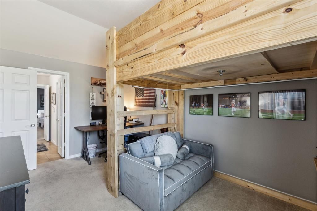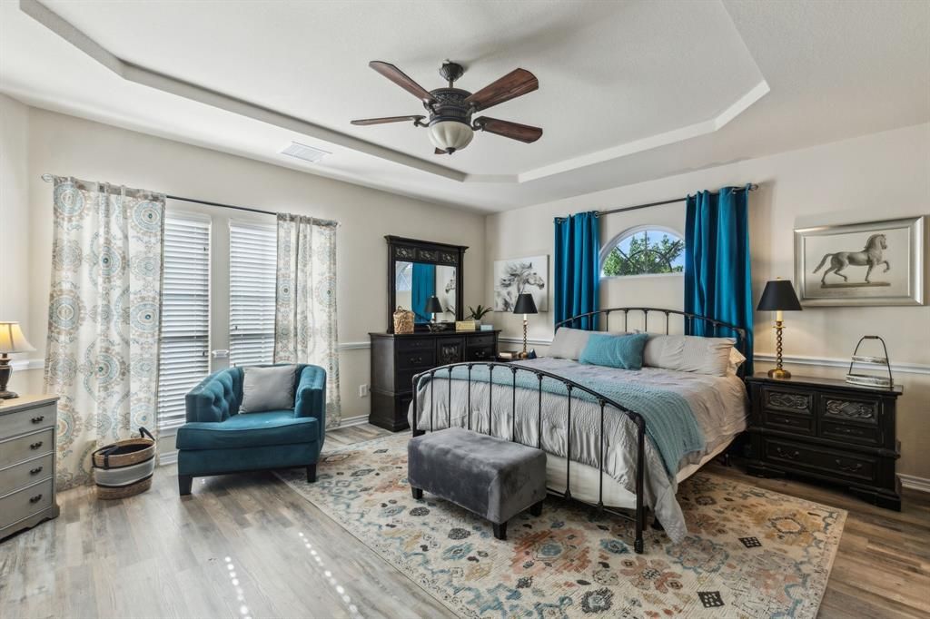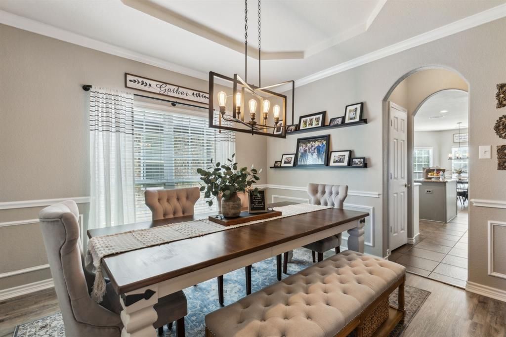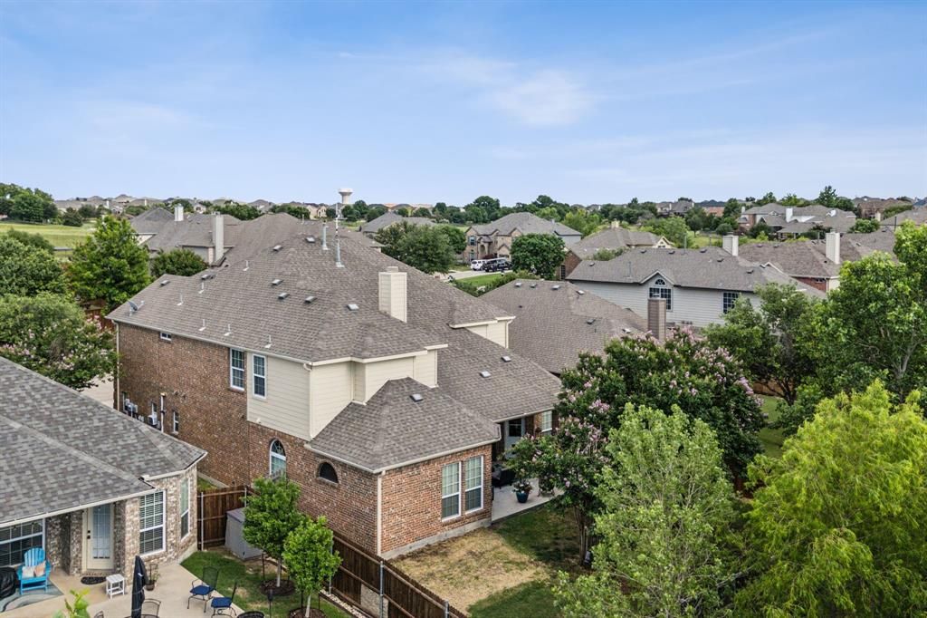 Welcome to this stunning two-story, east-facing home located in Celina, Texas, one of the fastest-growing cities in the USA. This exquisite residence features a spacious open concept design with six bedrooms, three full bathrooms, and a convenient half bathroom. Upon entering, you'll first notice the elegant formal dining room, perfect for hosting gatherings, while the gorgeous spiral staircase awaits just beyond as a captivating centerpiece of the home. The main floor includes a large open living room with a beautiful fireplace and mantle, kitchen with granite countertops and an island, a breakfast nook, and a master bedroom with an en suite bathroom, providing a serene retreat, along with a dedicated office space that is ideal for remote work or study. Upstairs, you'll find five additional bedrooms and two full bathrooms. One of the bedrooms features wardrobes on two walls, making it perfect for an office or library, while two others share a thoughtfully designed Jack and Jill restroom. Luxury vinyl flooring flows throughout most of the first floor, enhancing the modern feel. The expansive loft area upstairs offers versatile space for relaxation or recreation, and a flex space conversion (8'x16' approx. 128 additional sqft.) off the garage is fully equipped with electricity, water, and separate heating and cooling, ensuring efficiency. The exterior of the home is equally impressive, showcasing wonderful curb appeal with meticulously maintained landscaping. A covered back patio, complete with a ceiling fan, invites outdoor living, while all exterior woodwork and Hardie board siding have been freshly painted. The garage door and shutters were recently re-stained in May 2025, ensuring a polished look that complements this remarkable property. Close to shopping, elementary school, and Preston Rd. Don't miss this opportunity to own a rare six-bedroom home in Celina!! SELLERS TO CREDIT $5,000.00 TOWARDS CARPETING!!