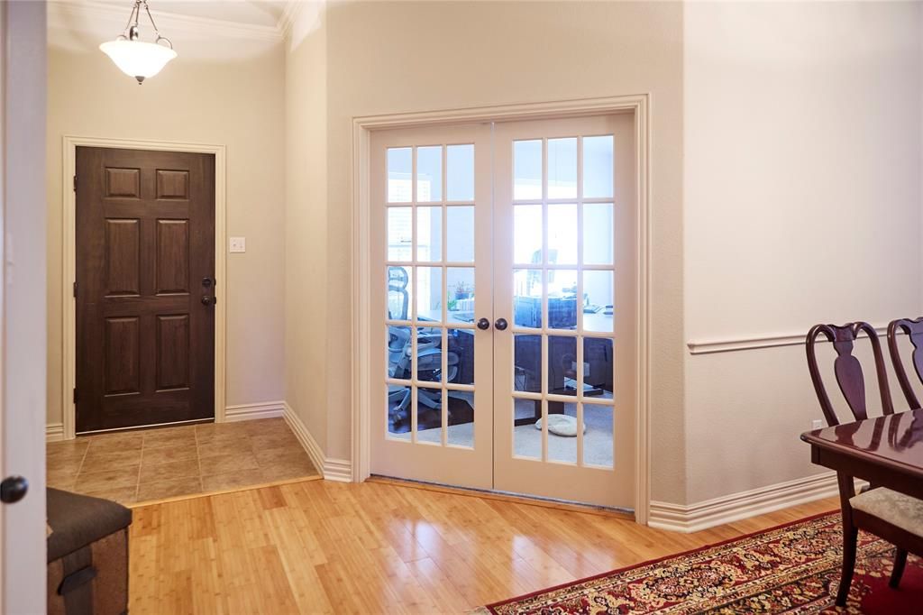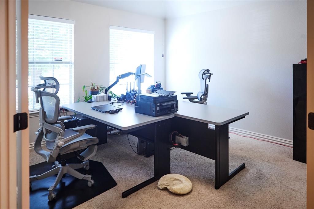 Immaculate Home in a Sought-After Neighborhood with Community Pool with bathrooms. This beautifully maintained home features a versatile floor plan, not your rubber-stamped floor plan, that includes a private office with French doors, a formal dining area, and a spacious living area with, high ceilings, and rich wood floors. The kitchen boasts granite countertops, stainless steel appliances, ceramic tile flooring, pantry, bar seating, and a built-in desk area"”perfect for work or homework stations. The large master suite offers a peaceful retreat, while the additional bedrooms are connected by a cozy study area that could easily serve as a 4th bedroom or second office. Recent updates and meticulous care by the sellers ensure the home is move-in ready. New Energy Star upgraded heat pump July 2024, overhaul air handler, Top Quality Storm doors with screens. Owners replaced the top portion of roof down to studs adding ridge vent. Refrigerator, outside trellises, and under table floor mats to stay. Sitting on a beautifully landscaped lot with a full sprinkler system, the property offers both curb appeal and low-maintenance living. Enjoy all the perks of this fantastic community"”including access to a neighborhood pool and facilities and a welcoming atmosphere. This home truly feels like new"”schedule your showing today!