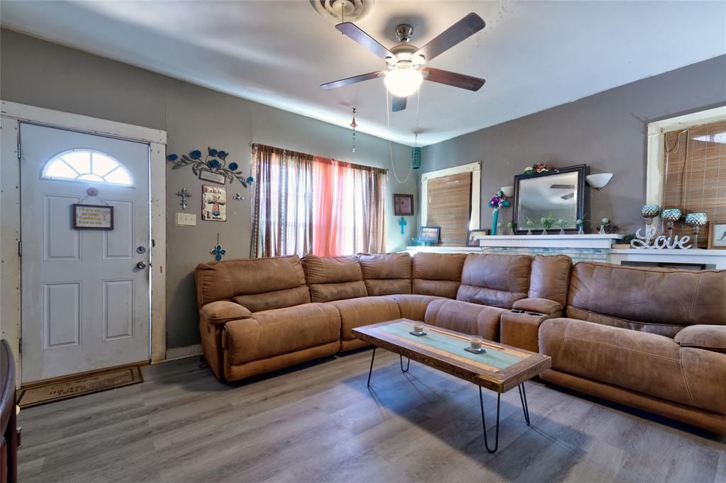 Charming home featuring 3 bedrooms and 2 bathrooms, offering 2,130 sq ft of living space. The open floor plan includes a cozy living room with soft grey walls, a bright dining area, and a well-equipped kitchen with sage green shaker cabinets, butcher block countertops, and modern stainless steel appliances. Step outside to enjoy a large backyard with mature trees, a full wooden privacy fence, and a concrete pathway. The home also boasts a covered front porch with decorative elements, ample natural light throughout, and convenient access to local amenities. Perfect for anyone seeking a peaceful retreat in a central location, this home offers both comfort and character.