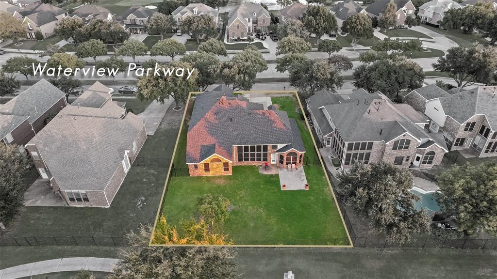 Experience golf course living at its finest in this stunning 5-bedroom, 4-bath home overlooking the highly sought-after Waterview Golf Course in Rowlett. Offering 3,509 square feet of beautifully designed living space, this home combines elegance, functionality, and breathtaking fairway views. Step inside to soaring ceilings and abundant natural light that create a warm and inviting atmosphere throughout. The front of the home features flexible formal living and dining spaces that can easily serve as a sophisticated sitting area or private home office. The heart of the home is the open-concept kitchen and living area, perfectly positioned to capture scenic golf course views and designed for both everyday living and entertaining. Large windows provide seamless indoor-outdoor flow to the covered patio, making it the ideal place to relax and enjoy peaceful evenings overlooking the course. The thoughtfully designed floor plan includes two bedrooms on the main level, including a spacious primary suite with a private bath, offering convenience and flexibility for guests or multi-generational living. Upstairs features a versatile flex space perfect for a media room, game room, or home gym, along with three additional bedrooms and two full bathrooms, providing plenty of room for family and guests. Located in the amenity-rich Waterview community, residents enjoy access to a championship golf course, community waterpark, scenic walking trails, parks, fishing ponds, playgrounds, and sports courts. Conveniently located near major highways, shopping, dining, and entertainment, this home offers the perfect balance of luxury living and everyday convenience. A rare opportunity to own a golf course home in one of Rowlett's most desirable communities.