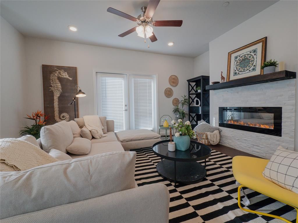 Beautiful townhome nestled in a charming waterfront community! Just steps from the lake, this thoughtfully designed master-planned neighborhood is also moments from Sapphire Bay, along with a variety of shopping, dining, and everyday conveniences nearby. This spacious home features 3 bedrooms, 2.5 bathrooms, and an attached two-car garage. Enjoy outdoor living with a welcoming covered porch, a private patio, and a third-floor balcony perfect for relaxing. The first floor features an open floorplan with your living room perfect for entertaining with an electric fireplace, island style kitchen that opens seamlessly to the dining and family areas, and a half bath powder room. All bedrooms are located on the second floor, the primary suite offering generous space and en-suite bath. The versatile third-floor retreat can easily serve as a game room, home office, media space, or additional living area, complete with large windows that invite in natural light and scenic views, with access to a private balcony. With scenic walking and biking trails just steps from your door, this stunning lakeside townhome offers the perfect blend of comfort, convenience, and lifestyle.